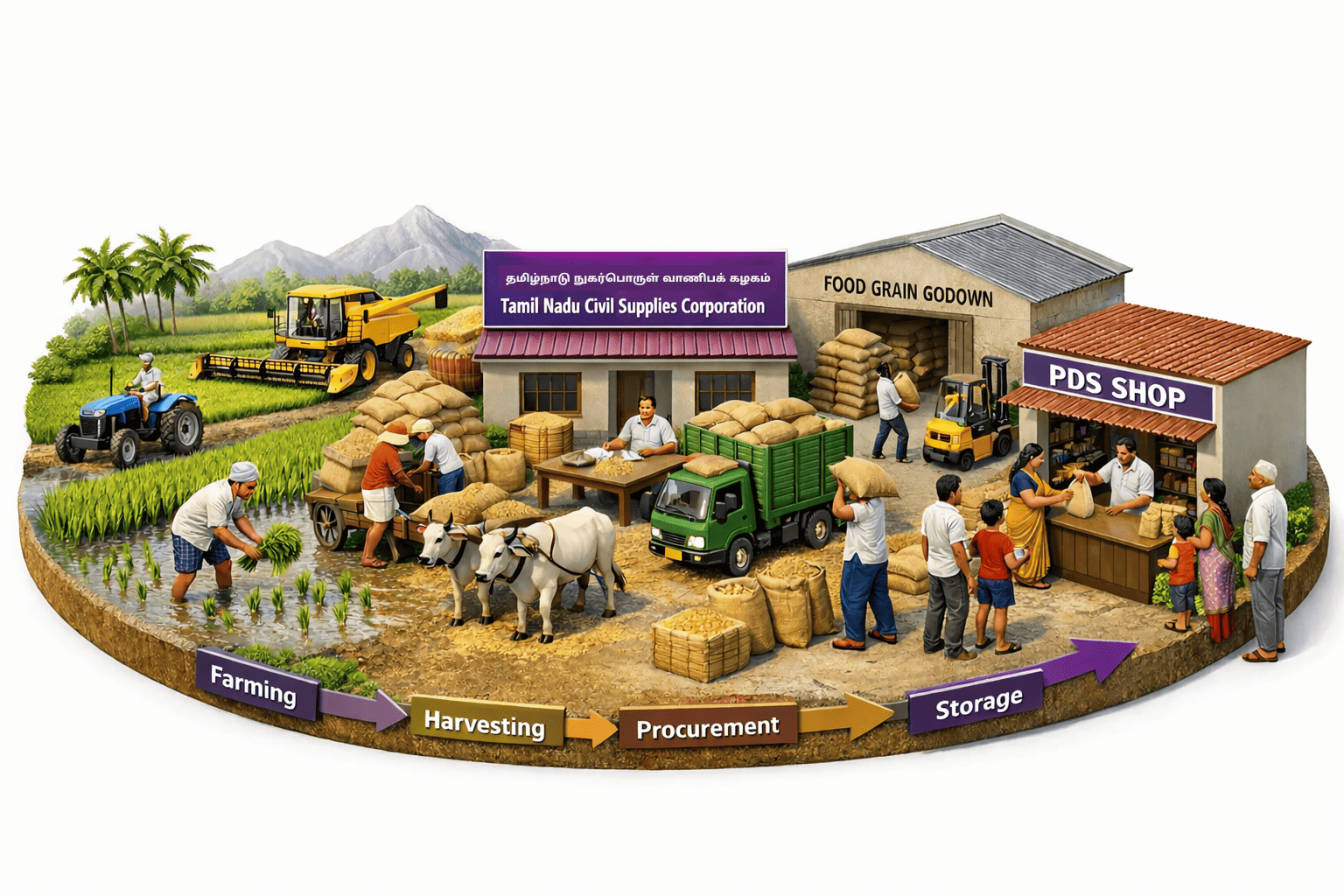 Tamil Nadu Civil Supplies Corporation was established in the year 1972 by the then Hon’ble Chief Minister Muthamizh Arignar Kalaignar with the noble task of procurement, storage and distribution of essential commodities under the Public Distribution System. Tamil Nadu was the first state in the country to constitute such a body which has contributed significantly in ensuring food security to the people of the state.